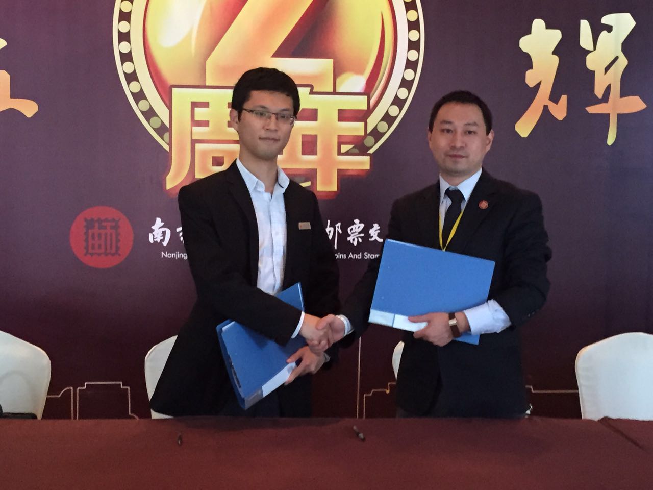 2015年10月20日,江蘇磐石股權(quán)投資基金管理有限公司與南京文交所錢幣郵票交易中心簽署了戰(zhàn)略合作協(xié)議,磐石基金將為南京文交所錢幣郵票交易中心錢幣郵票電子交易平臺中的上市藏品量身定制投資產(chǎn)品,并在市場開拓、資源整合等方面開展合作,共同開啟郵幣卡電子交易市場的機(jī)構(gòu)時代。